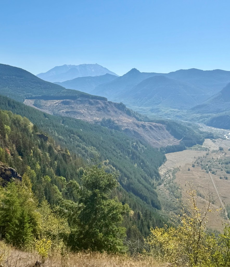 I knew today was going to be a long one since it involved 105 miles of climbing and 3,500 feet of climbing. Little did I know that the riding would be the easy part. I would travel today south through the Capital State Forest and continue almost due south to our destination of Castle Rock, Washington. The Mt. St. Helen’s Visitor Center is in Castle Rock so Les was going to drive ahead and visit the Visitor Center and the adjoining National Park.