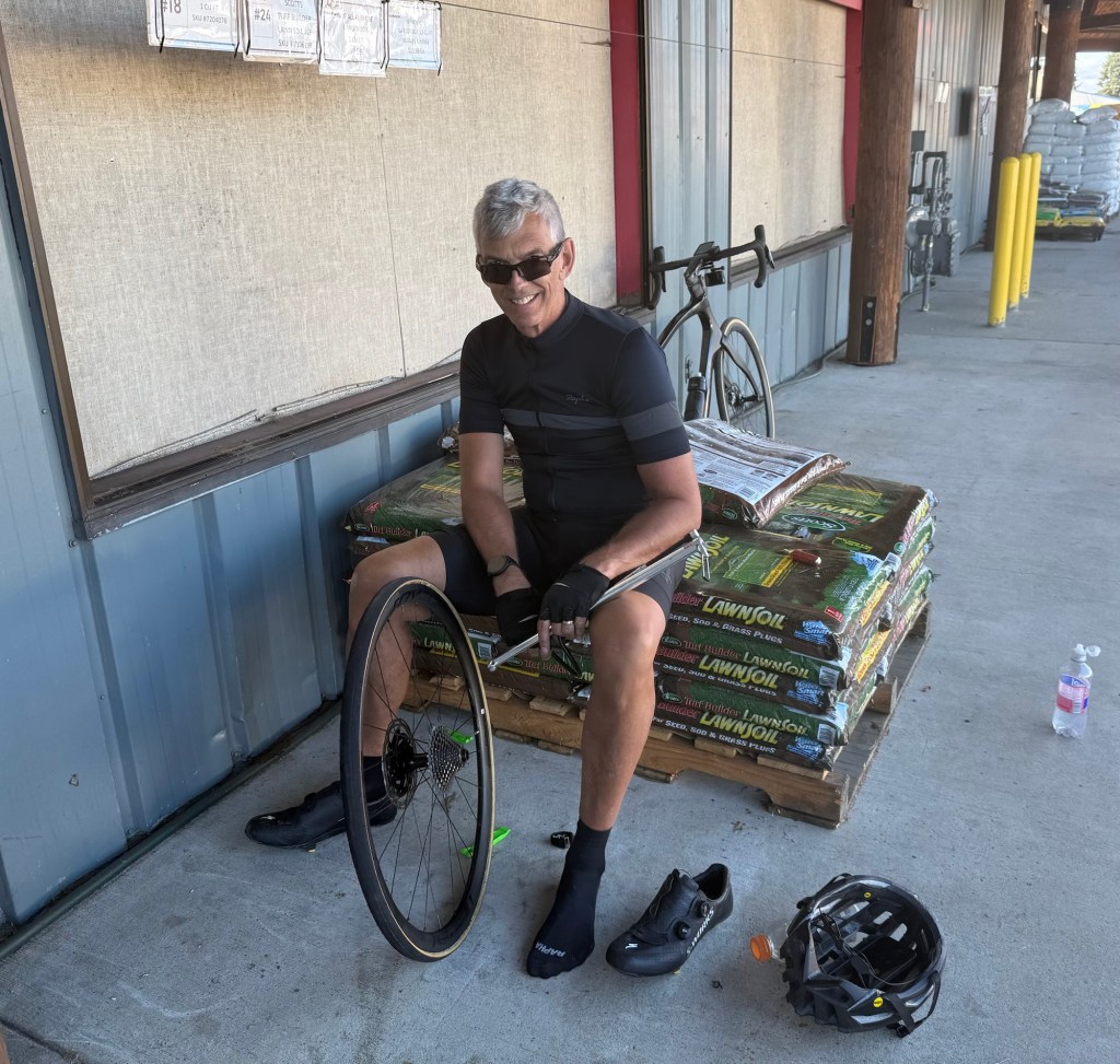 I am writing this portion of the blog at 2:00 pm (Pacific Time) as I sit in an Ace Hardware parking lot waiting for Leslie to bring me extra tubes and CO2 cartridges. How did I end up in this predicament? Let me explain.