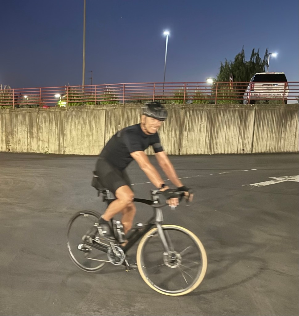 With about five miles to go, I was in total darkness and racing to get to the hotel. Except for having to avoid the occasional garbage can that would pop up out of the darkness, the nighttime bike ride was relatively uneventful.