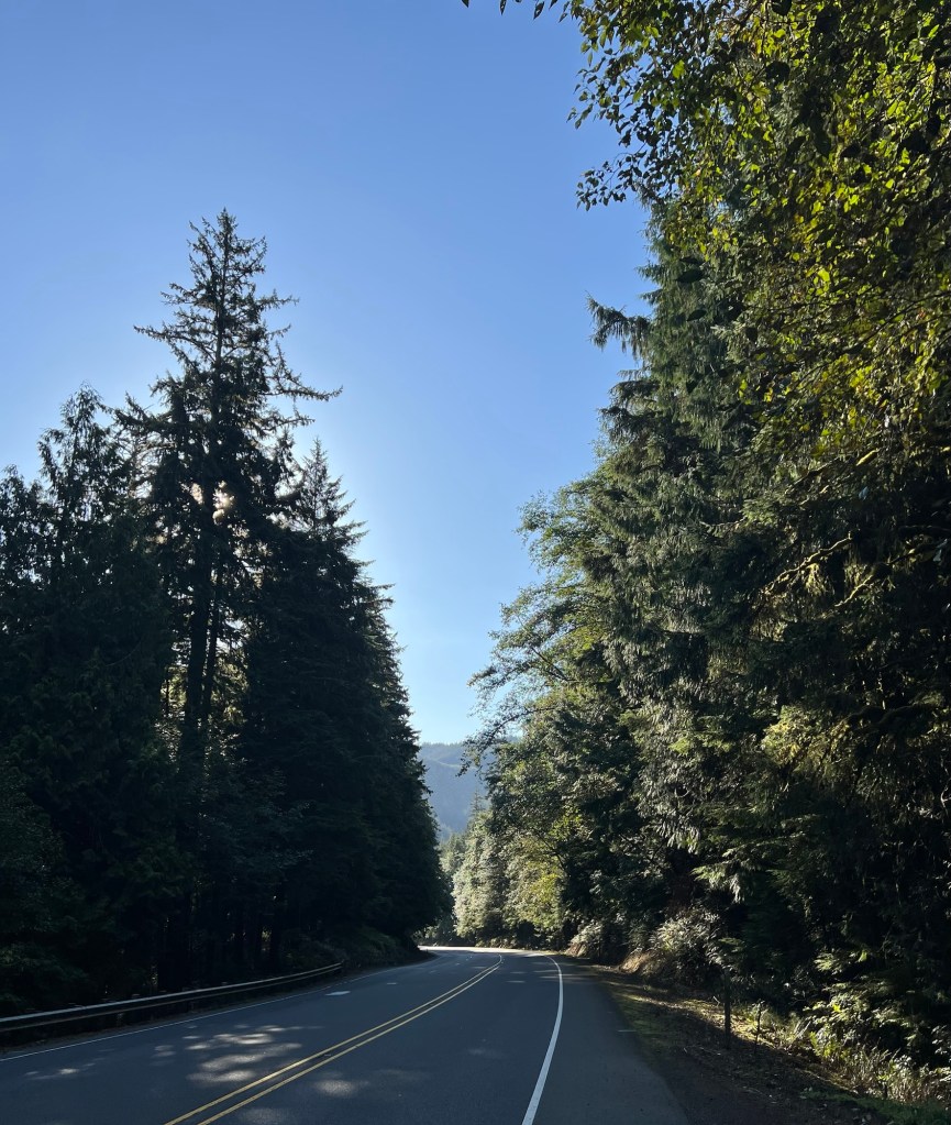 With my identity solidified, I headed South down the coast highway. It was fabulous, with the ocean on my right and the towering trees (whatever those that Mr. Duggan said). I could hear the waves crashing below, creating a meditative state while pedaling.