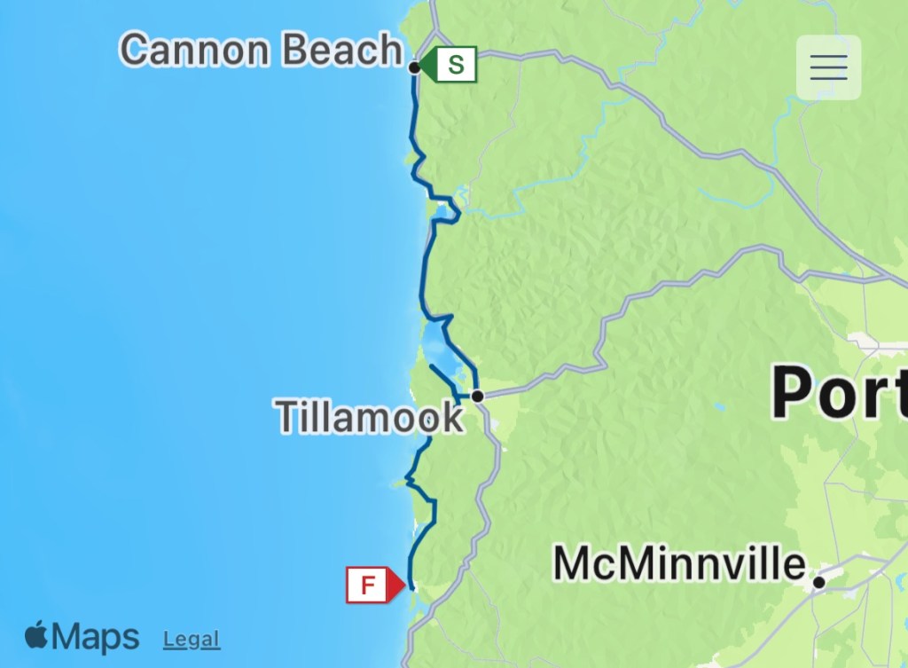 While I was riding, Leslie was going to follow the same route as me, either slightly in front or behind. The road had numerous scenic turnouts for the views, and she was also going to stop at some parks. We agreed to meet in Tillamook and go to the Tillamook Creamery for some grilled cheese sandwiches (wow we are a romantic couple).