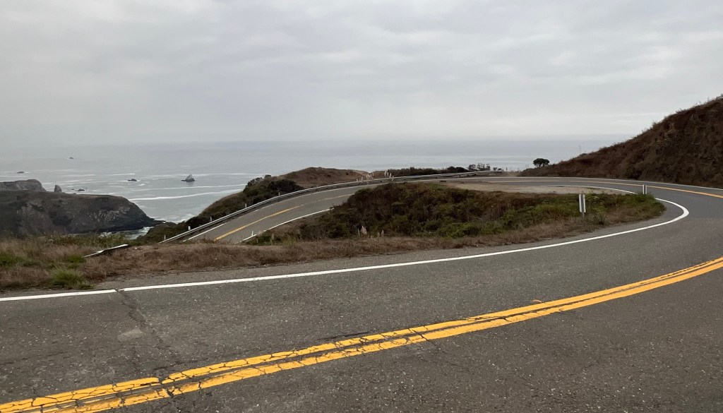 Poor Les has been riding the cliffside roads in a Ford Explorer, not exactly the perfect car to careen around the zigzagging roads along the California coast. With fraying nerves, she is going to go inland and drive ahead to Sausalito.